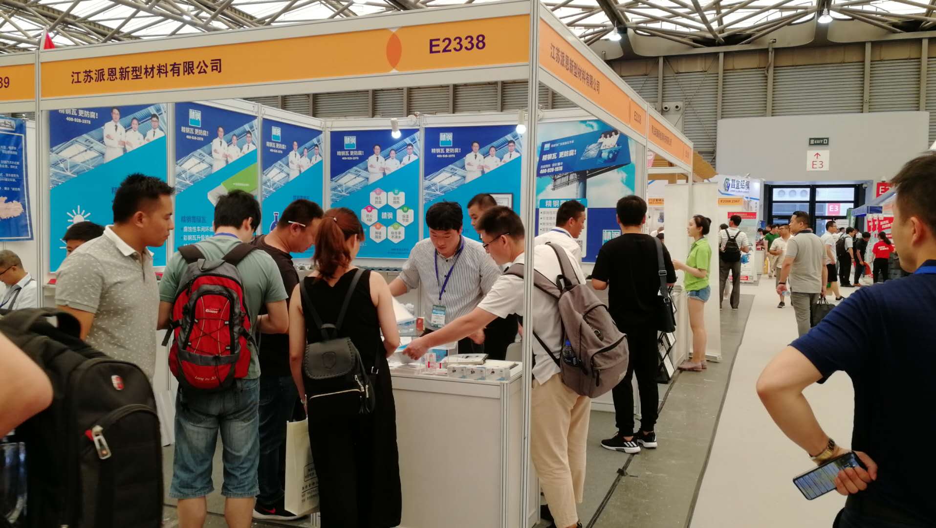 展會進行期間,從全國各地前來參觀的客戶絡(luò)繹不絕,其中有知名設(shè)計院的設(shè)計師,建筑工程公司的高層領(lǐng)導(dǎo),屋面建筑材料的業(yè)內(nèi)同仁,還有前來考察合作項目的外國友人。大家對江蘇派恩的精鋼覆膜瓦和各式樣品好奇不已,紛紛上前圍觀,認真翻閱宣傳冊資料,仔細聆聽宣傳介紹,詳細咨詢關(guān)于精鋼覆膜瓦的材料組成、產(chǎn)品性能以及安裝施工等具體事宜,江蘇派恩的現(xiàn)場工作人員一一為客戶熱情講細地解答。精鋼覆膜瓦以其優(yōu)良的品質(zhì)、卓越的性能受到了客戶的一致肯定與高度評價。